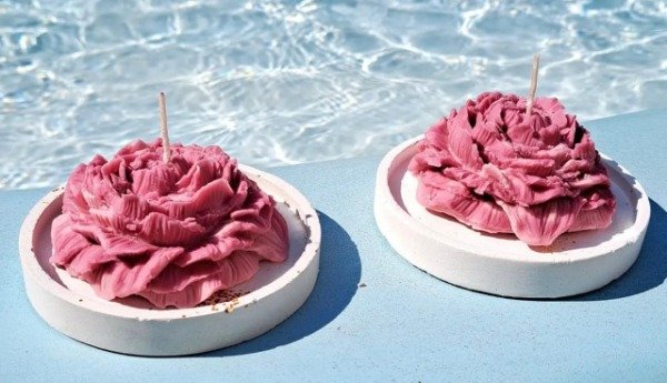 Velas Peonias aromáticas aromáticas con base circular de 10 cm de diámetro.