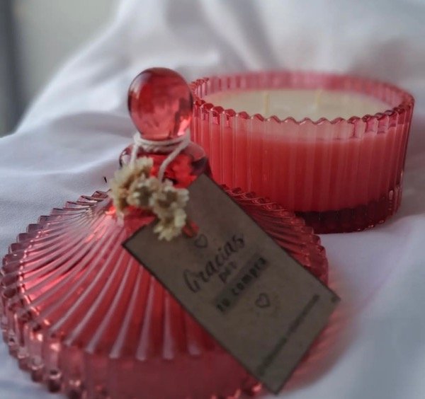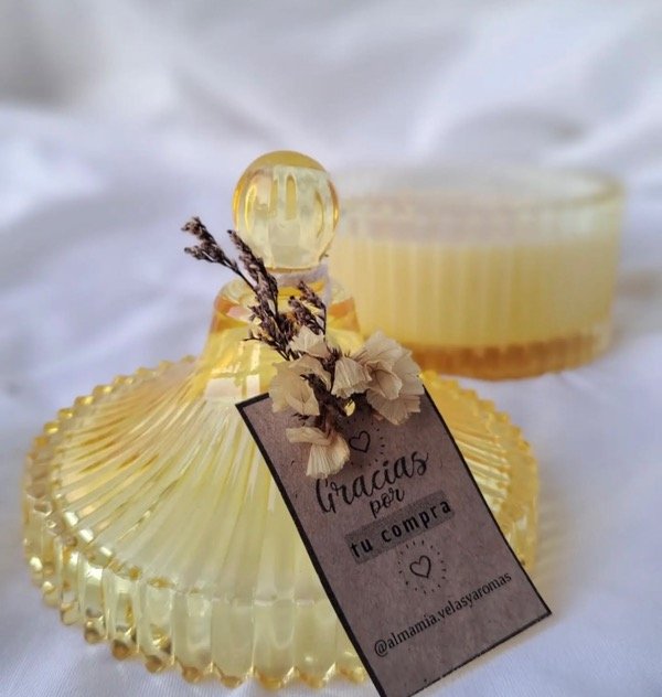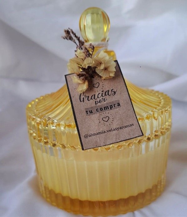 Velas de cera de soja aromática en recipiente caramelero de vidrio. Hermosas, delicadas y decorativas.